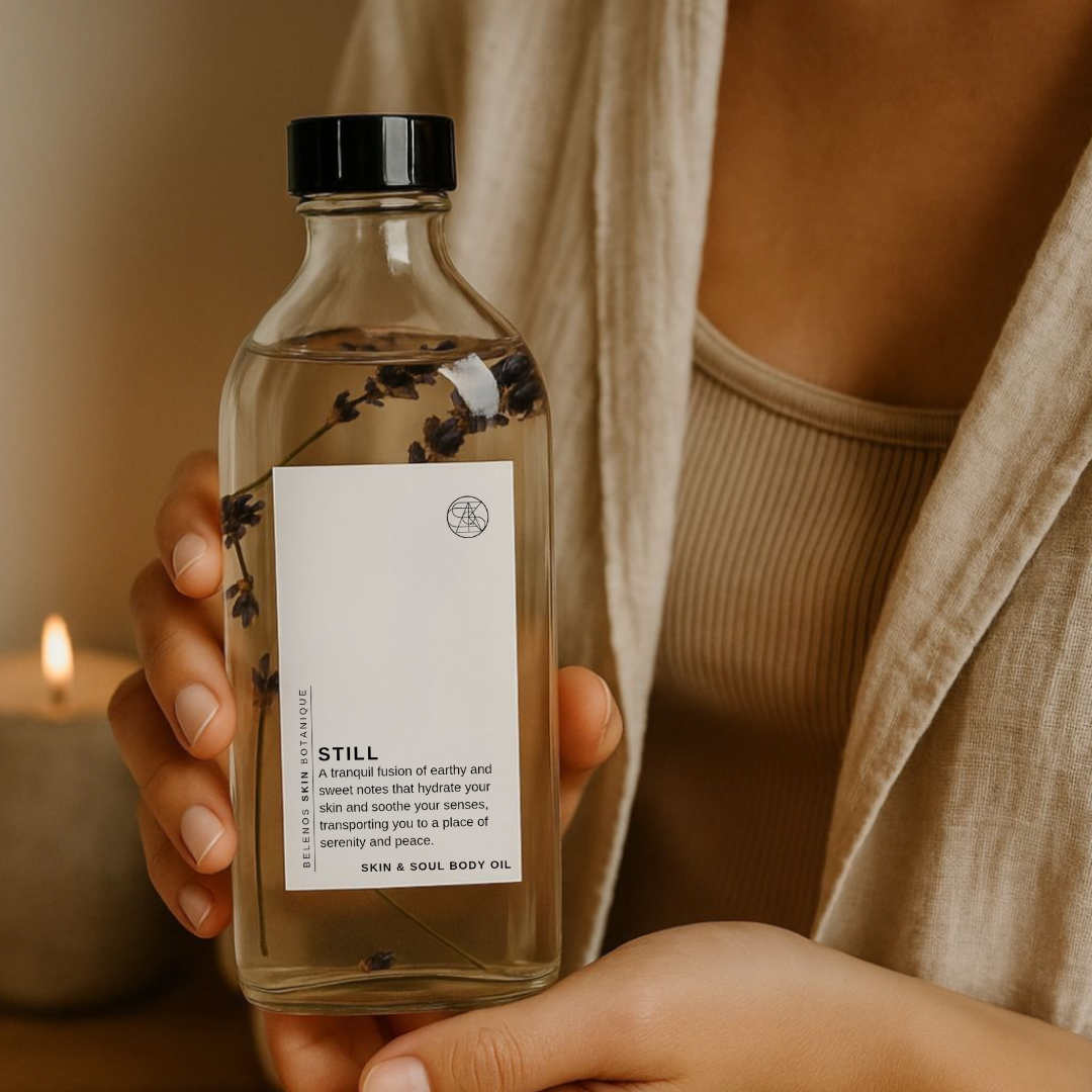 Our Still Bath to Body Oil is an oasis of tranquility, a sublime fusion of earthy and sweet notes that hydrate your skin and soothe your senses. It is crafted with the utmost care and attention to detail, designed to transport you to a place of serenity and peace when you need it most.